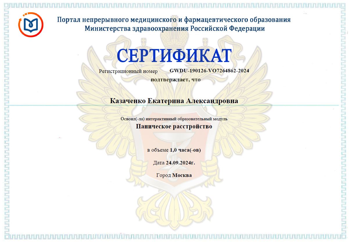 - 2024 г. - образовательный модуль "Паническое расстройство";