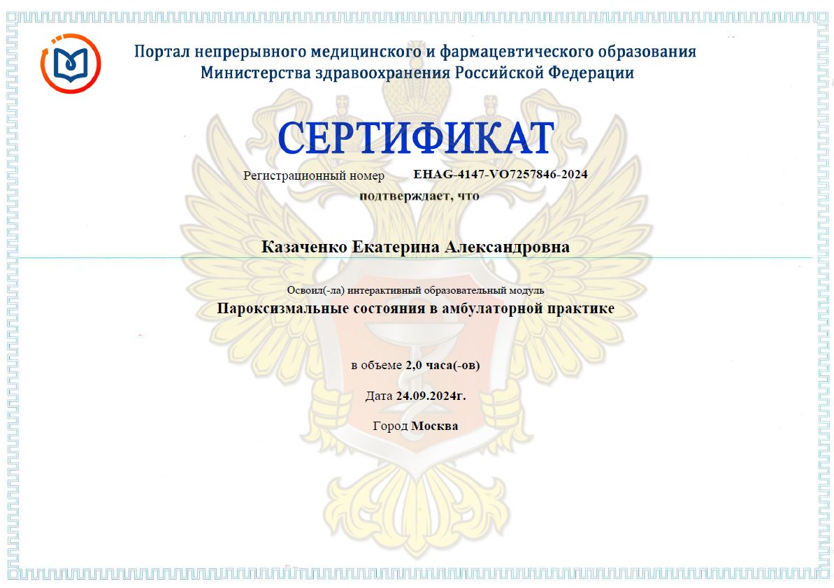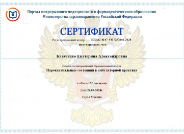 - 2024 г. - образовательный модуль "Пароксизмальные состояния в амбулаторной практике";