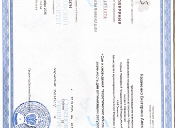- 2025 г. - Повышение квалификации по дополнительной профессиональной программе "Сон и сновидения: теоретические основы и практическая значимость для оптимизации ресурсов человека".